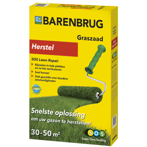 Envisagez-vous de réensemencer toute la pelouse ? Ou seulement quelques endroits dénudés ? Avec Barenbrug, il n'est pas difficile de semer du gazon. La meilleure façon de procéder est d'utiliser un bon mélange de semences de gazon de récupération. Avec un sursemis et un gazon de regarnissage, vous restaurez non seulement votre gazon, mais aussi le plaisir que vous pouvez tirer de votre pelouse. Le gazon de réparation de Barenbrug contient un pourcentage élevé de ray-grass anglais. Cela garantit une levée et une reprise rapides de votre pelouse. Les semences de gazon de réparation sont dotées d'une technologie spéciale S.O.S. (Super Over Seeding) qui permet de semer très tôt au printemps, à des températures inférieures à 6 degrés. Avec un gazon de récupération de Barenbrug, vous avez la garantie d'un été vert et sans souci !
