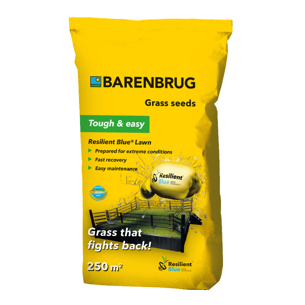 Les semences de gazon Resilient Blue Lawn de Barenbrug sont idéales pour l'établissement d'une nouvelle pelouse et la végétalisation des espaces publics. Cette semence de gazon est spécialement conçue pour résister à des conditions climatiques extrêmes, telles qu'une sécheresse prolongée ou de fortes pluies.