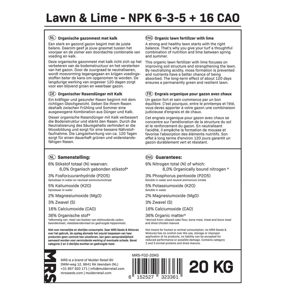 Lawn & Lime - Engrais organique pour gazon avec chaux - 20 kg