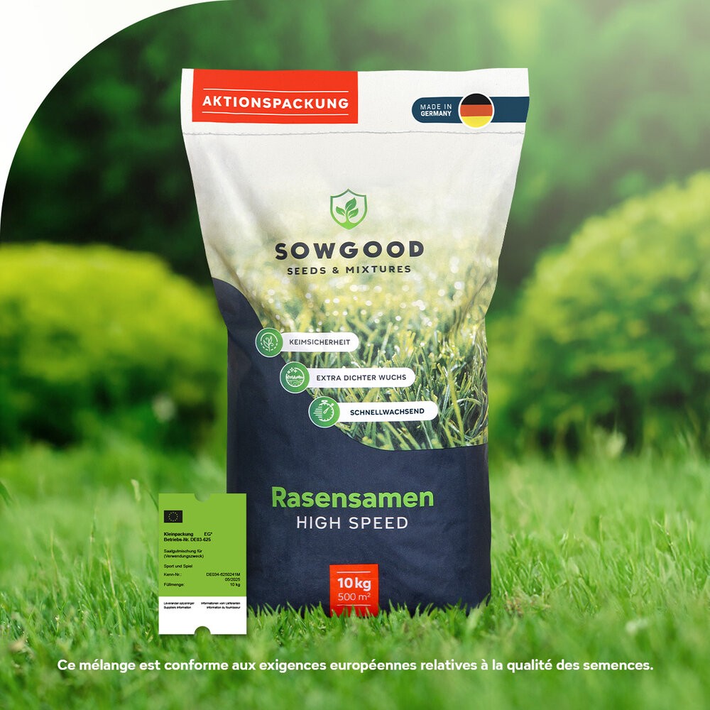Les premiers brins d’herbe apparaissent dès les premiers jours, pour peu que les conditions météorologiques soient favorables. Cette rapidité est due à la présence de ray-grass de Westerwold, une variété réputée pour sa germination éclair. Vous obtenez ainsi une idée claire du résultat sans devoir attendre plusieurs semaines.